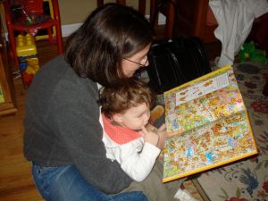 The first order of business today was, not coincidentally, Claire’s two-year checkup at the doctor. Claire was somewhat scared and suspicious from her previous experiences with ear infection and shots. During the ear prodding, she did some pretty good resisting and crying, and I had to hold her arms and head still. Then afterwards Claire collected herself and declared, “I’m okay” with a sheepish smile. Claire’s height and weight are both now very close to 50% percentile, down from her earlier slightly above normal numbers. Claire was again pretty freaked out, understandably, about being held down and poked with needles for her flu and hep-a vaccinations. She did her best to collect herself again, but it was the lolipop at the checkout line that really calmed her down and kept her quiet in the car all the way to see Grace and Reese.