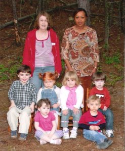 Anyways, someone had arranged to look at the house this evening, and we all had to clear out of the house between 5:30 and 6:30. So Kit picked up Claire from Grace, I dropped Muffin off at our friend Melissa’s house, and we all met up at Chick-fil-A where we could turn Claire loose on the playground for a while. They were having some sort of kid’s night there, and the place was crawling with kids. Claire played a “spin the wheel” game, where in reality she won a Cinnamon Cluster, but thankfully they gave her a little toy cow with a sign reading “Eat mor chikn” instead.