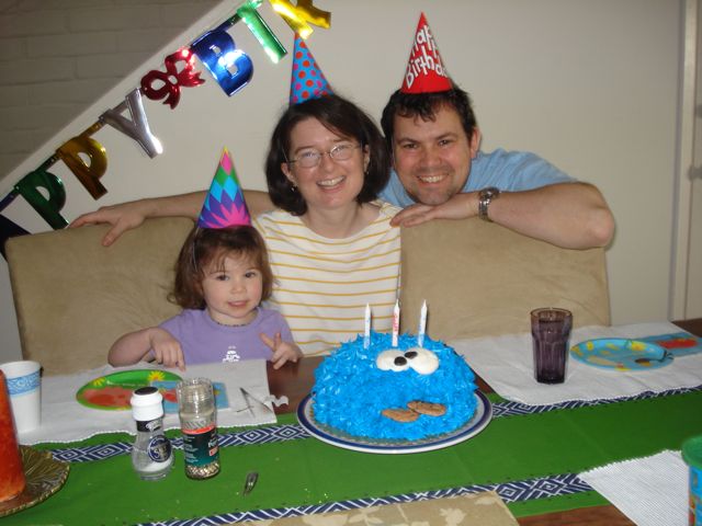 Claire tacked on another year today. She is now exactly three feet tall and three years old. To tell you the truth, this was sort of a tough birthday. But Claire soldiered through it quite admirably and had a pretty good day.