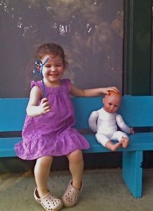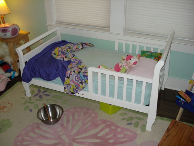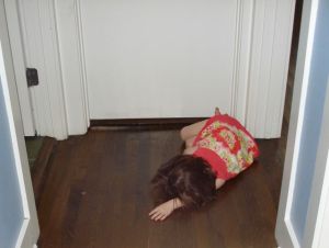 Today Claire was obviously exhausted when nap time came around. She spent about an hour talking and singing to herself before it got quiet in her room. After another 20 minutes, I went to see if she was in fact asleep. Sure enough, she was asleep — in the hallway outside of her room! I went and got Kit to see this unexpected situation. Not wanting to disturb her sleep, we left her alone and went back upstairs to work on a few things to prepare for the new baby. When we came back downstairs a half hour later, Claire was back in her bed sound asleep. It is hard to imagine Claire picking herself up, walking back into her room, and putting herself to sleep. But I can only assume the stuffed animals did not carry her back to bed.