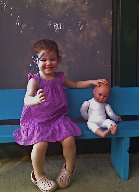 Claire has always resisted naps. When it is time for a nap at home, she normally stays in her bed but does everything she can to keep herself awake. We can here what is going on in there from the baby monitor we have installed. Claire has conversations with her stuffed animals, complete with distinct voices for herself and the animals. Sometimes the conversations are borrowed from favorite movies. She sings elaborate songs to herself, usually about the events of the day. Sometimes her room gets quiet for 10 to 15 minutes, and just when we think she has dozed off, she suddenly starts singing or yelling really loud, apparently to wake herself back up. We are told that at school she takes an hour or more to put herself to sleep, although she is very congenial about it. Now Claire is old enough to talk to us about it. She tells us that she does not want to go to sleep because she wants to keep playing. (I cannot blame her for this behavior since I do the same thing, only instead of talking or singing to myself, I fortunately entertain myself with the computer or an audio book.)
