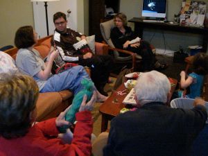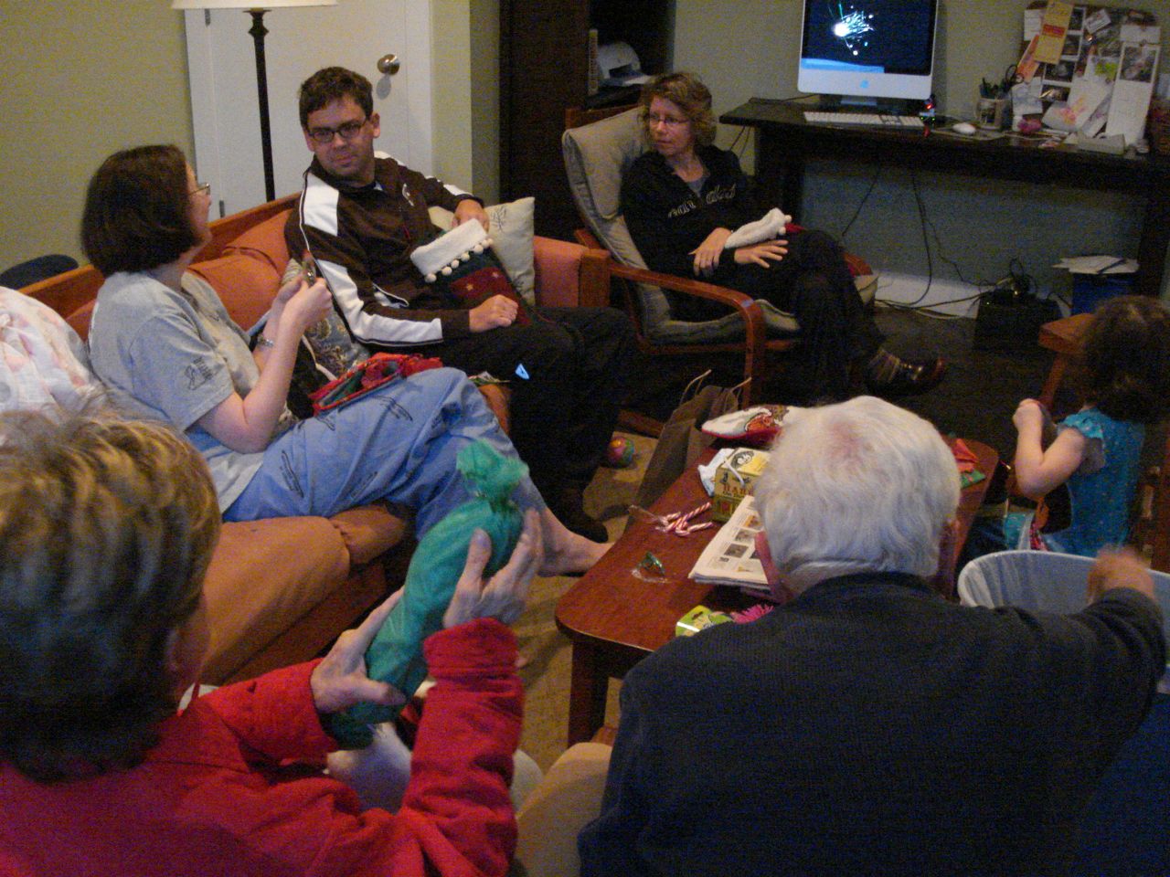 This was a great Christmas, especially for Claire. My brother Tim and his wife Cindy came to Texas for the holidays along with my parents. Everyone came to Austin, and we hosted everyone for Christmas for the first time. Tim and Cindy really hit it off with Claire. Claire had countless games and jokes with them all through the two days they were here. She started things off by showing them her very favorite new show, a Pixar animated short film which Kit had recorded, called One Man Band. She tried to get them to laugh and scream at all the funny bits.
