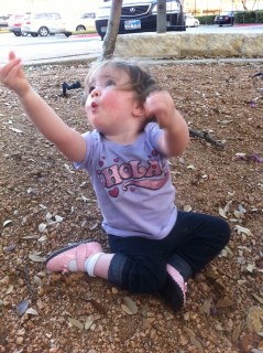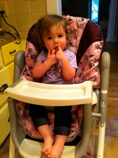 Back to the well check…we had some cautiously good news. Molly now weighed in at 18 pounds and 12 ounces. She’s small, but definitely growing, and the doctor was happy about that. Coupled with a lot of walking and talking, the doctor was pretty encouraged with the way Molly was coming along. After all, Molly also looks like this once we get her away from the high chair: