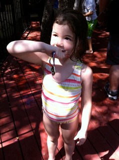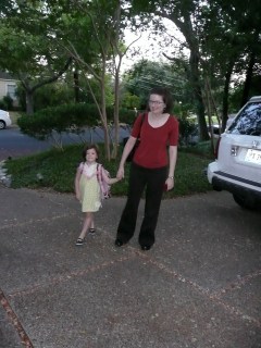 Grammy came along to pick up Claire in the afternoon. Kit would, much to her regret, not be able to pick Claire up in the afternoons except when she was on vacation. Anyways, Claire is the only kid from her class in extend-a-care. Even though it goes on until 5:30, we picked her up around 3:15, largely out of impatience to see her and to hear about her day. When we saw her in the cafeteria, Claire looked red and nervous and unhappy. Claire would later explain that she liked kindergarten and had a fun day in class. She liked her teacher, who was really nice and not mean at all. But she was confused about going to extend-a-care, and she was scared that we would not be able to find her. She was really scared that she might just be left there. That must have been a terrifying feeling for a kid. I was a little surprised this was an issue since we had picked her up every day without fail from daycare, I had explained extend-a-care to Claire ahead of time, but I guess it was still weird getting separated form her classmates and taken off to the cafeteria. Of course, I assured Claire that me or Mom would always come get her every day, and we would find her no natter where she was. And she could always ask a teacher if she was confused or lost for any reason. This seemed to help, but it was a tough ending for a big day.