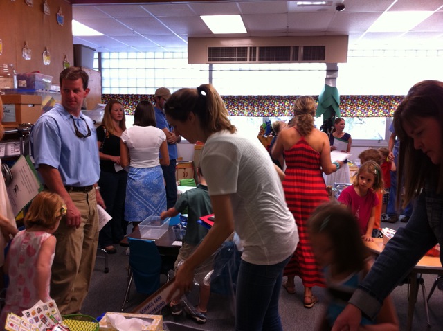 The morning went pretty smoothly. Claire has been waking up around 6:45 for a few weeks now, so that put her on kindergarten time right off the bat. Claire was in a good mood and ready to roll. We were out of the house in plenty of time and at the classroom at 7:35, 10 minutes early. Grammy and Granddaddy were in town, which was good for Molly, who has been waking up between 7:30 and 8:00 most days. She got to sleep in and have a nice slow breakfast with her grandparents while Claire, Kit, and I were wading through the mass of kids and cars up at Claire’s new elementary school.