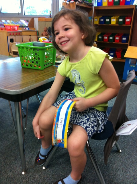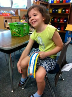 Other current favorites include The Hair of Zoe Fleefenbacher Goes to School, which Claire checked out from her school library, and Ruby the Copycat, both of which are about a girl’s struggle in school and ultimate redemption. These fine books may be helping to soothe Claire’s kindergarten jitters.