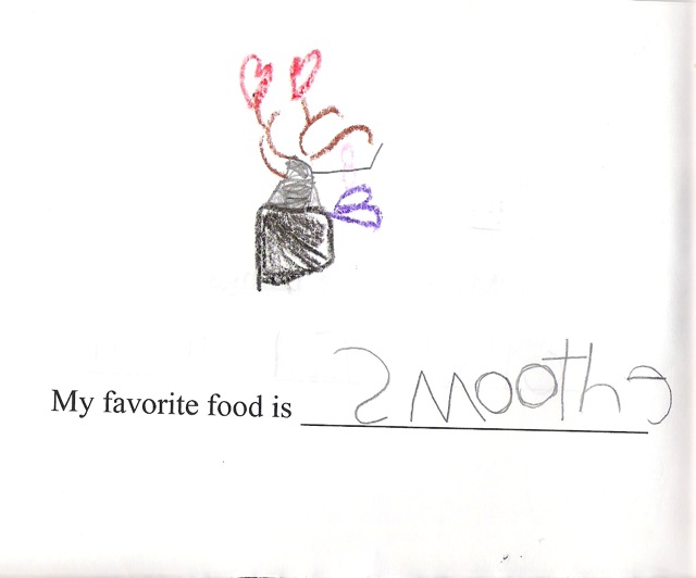Today in kindergarten, Claire did a school assignment called “My Favorite Things”. Claire was given a small book and had to fill in her answer to various questions about her favorite things, plus add an illustration. I’m not really up for scanning each page into the blog, but here is a sample page and the full text: