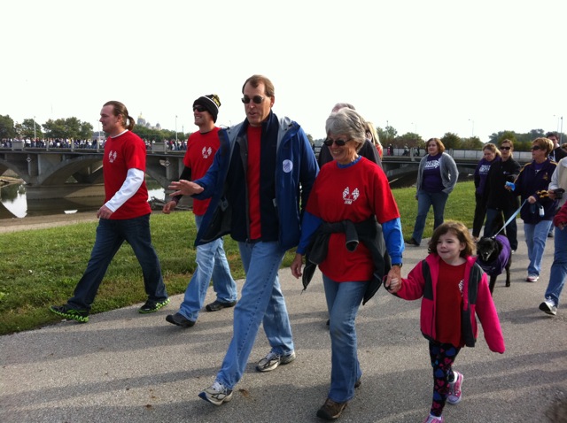 Claire accompanied her mom to Iowa this weekend to attend a service for her late, great uncle (?) Jim, and to take part in an Alzheimer’s fundraiser walk . Molly stayed back home with me, as she is still not quite ready for a fast-pased weekend trip, in and our of airports and hotels, like this. And it’s a good thing she stayed home, because there were some late nights and no real nap times. In particular, the well-planned return flight from Iowa got delayed by several hours. Kit and Claire ended up ditching the last leg of their flight and driving home to Austin from Dallas, arriving home at 11 pm on Sunday night. Claire was up for school at 6:30 the next morning. That might have been sort of tough on Claire, but if Molly had been on the trip, it would have cut Sunday night’s sleep just about in half!
