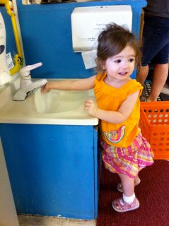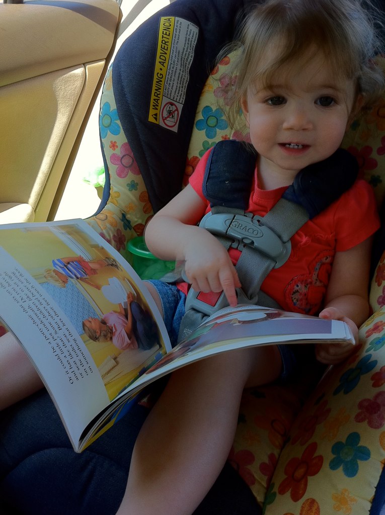 Molly loves to sit and “read” this book in her leisure time. She is transfixed by the pictures of toddlers sitting on toilets, being praised and helped by their ostensible parents. Molly is not quite yet starting toilet training, but they are talking about toilets, BM’s, etc. at school now, so it is a good subject.
