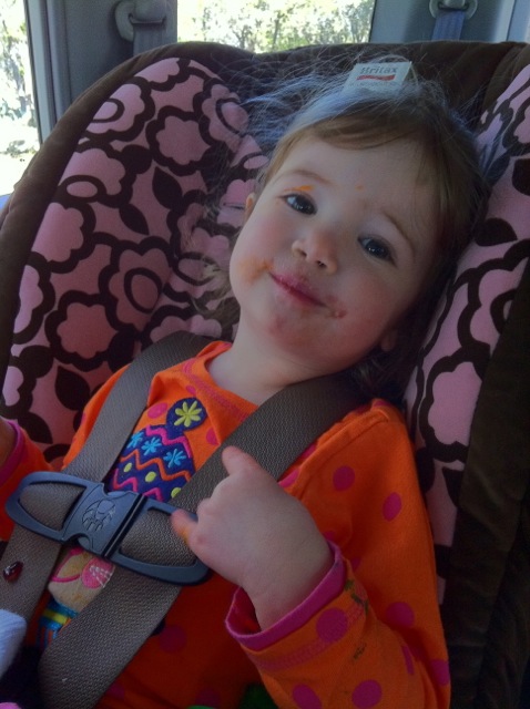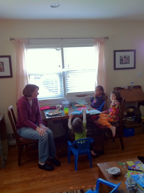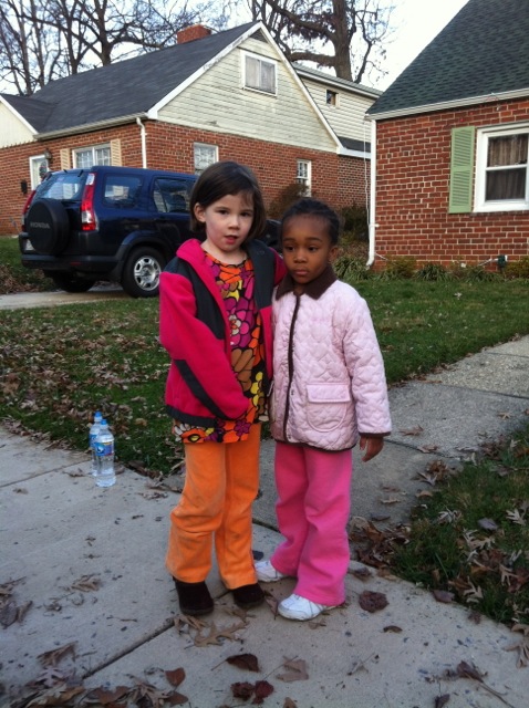 The next day, Kit, Claire, Molly, and I headed out to see our college friend Andrea in Silver Spring, Maryland. Andrea is providing foster care for two girls, ages 4 and 12, who we had not yet met. Claire and the younger girl, Caitlin, hit it off nicely. They were pretty quickly dancing and singing around the house. They made a few trips into the bathroom together to say “bathroom words” in the one place where that was okay. So were heard them in there yelling words like “toilet” and “diarrhea” over and over and giggling wildly. The bathroom words were probably what sealed their friendship more than anything. Claire and Caitlin settled down and drew pictures together. Molly played with Caitlin’s mega-blocks and generally hung out. We eventually walked down to the neighborhood park, where the girls played themselves nearly to exhaustion, Claire showing off her new monkey-bar skills to the younger Caitlin. Molly had the best time of all, throwing herself down the twisty slide in as many odd and dangerous ways as possible, but walking away okay as usual. After the park, it was getting late and time to head back to Tim’s house. Claire knew she was having to say goodbye to a great new friend, and she said to Caitlin, “I hope I see you again some day”, looking down glumly at the ground. I nearly wept.