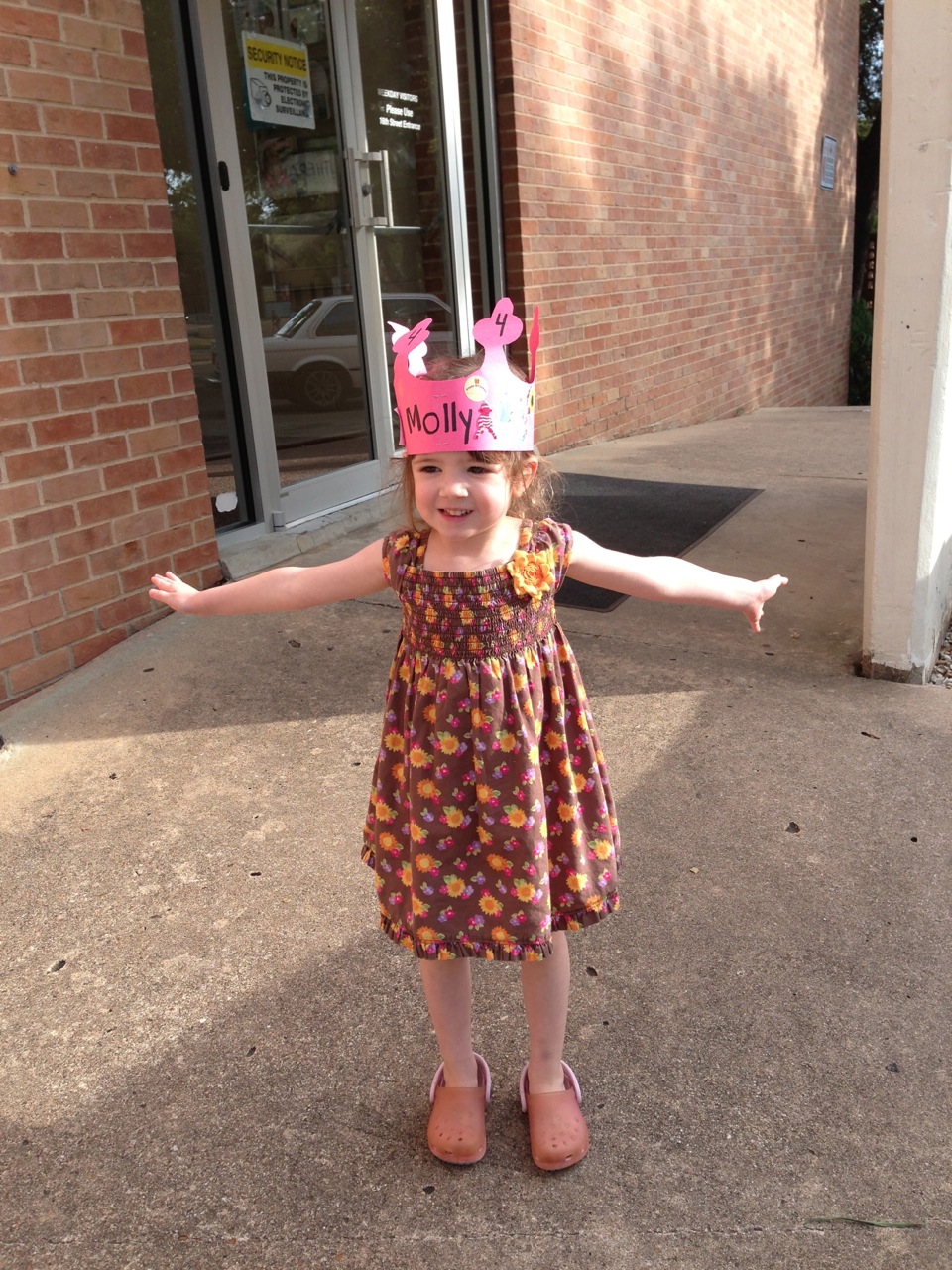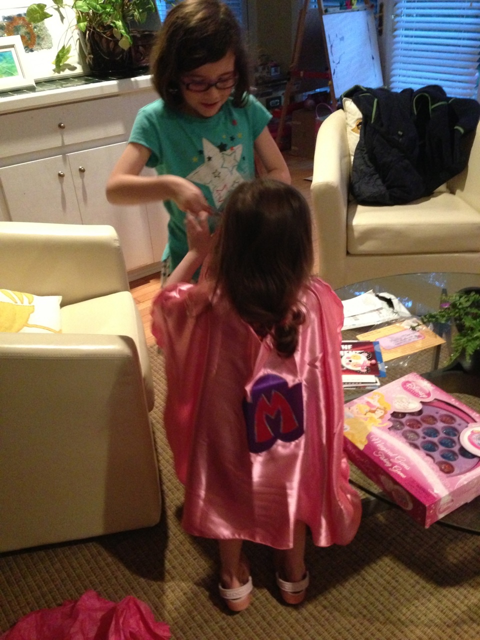 Her latest idea along these lines is Tuesday Night Book Club. Instead of reading a book in bed together, we pretend it is story time at Austin Public Library. I sit in a chair and read a story (currently Henry and Beezus by Beverly Cleary) while Claire sits on the floor and listens. She becomes a girl named Sally who was dropped off at the library for story time. Actually, Claire calls it “book club” since that sounds more grown up. I act the part of the story reader and say stuff like, “Thanks for coming out to the book club tonight, kids,” at the beginning and “Looks like your parents are here to pick you up” at the end. Claire encourages me to ask questions about the book. For example, “Why does Henry not want Scooter to know that Ribsy picked up all the newspapers on Klickitat Street?” Then Sally (Claire) raises her hand to answer the question. Claire uses her official public / school voice while answering the question. “Um, he doesn’t want to lose the paper route while Scooter is on summer vacation. He want to earn a dollar for his bike fund.” Claire asks that I put a blanket over my lap to make it more sleepy. Then the “parents” come for pickup, and it’s off to bed. It really does put a fresh new twist on bedtime stories.