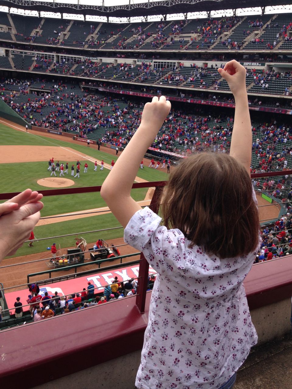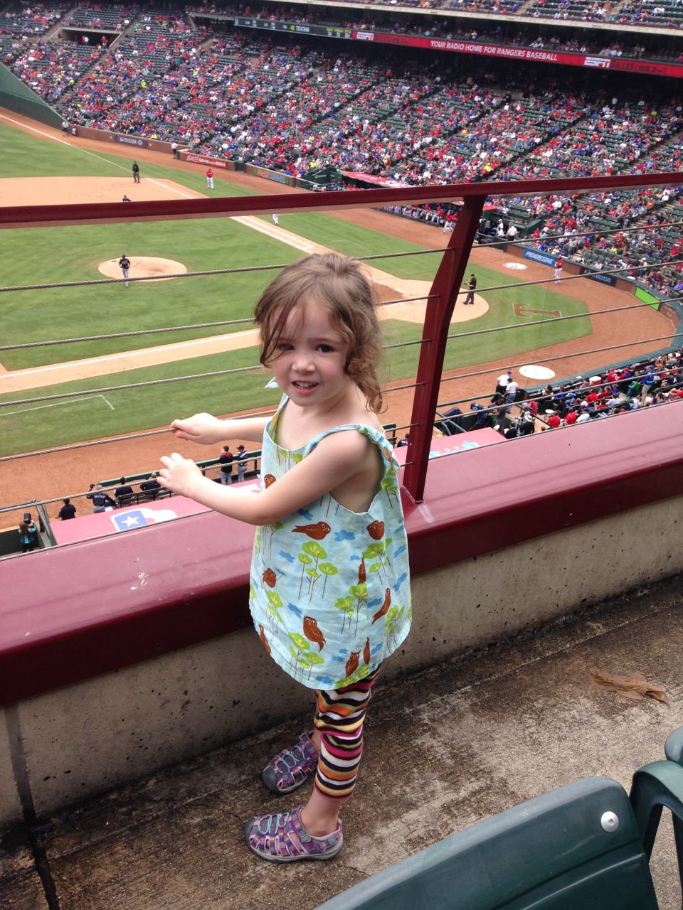 We took a quick one-night trip to Dallas this weekend to do two things that Kit had been dying to do for months: (1) visit her friend Clarissa, who moved to Dallas a few months ago, and (2) see a Rangers baseball game. We combined the two, and met Clarissa and her family at the game on Saturday afternoon, then stayed with them for Saturday night.