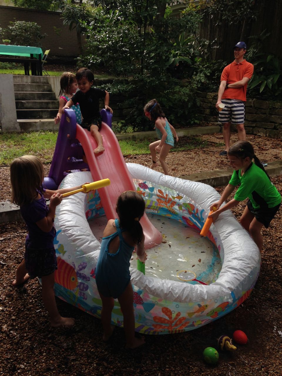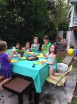 We were planning to have Molly’s birthday party at Pease Park, but the weather forecast called to 50% chance of rain, so we decided at the last minute to move it to our house. Of course, it did not rain after all, so we have it outside at our house. Anyways, it was a great party. Here are two genuine quotes overheard from her friends at the party: