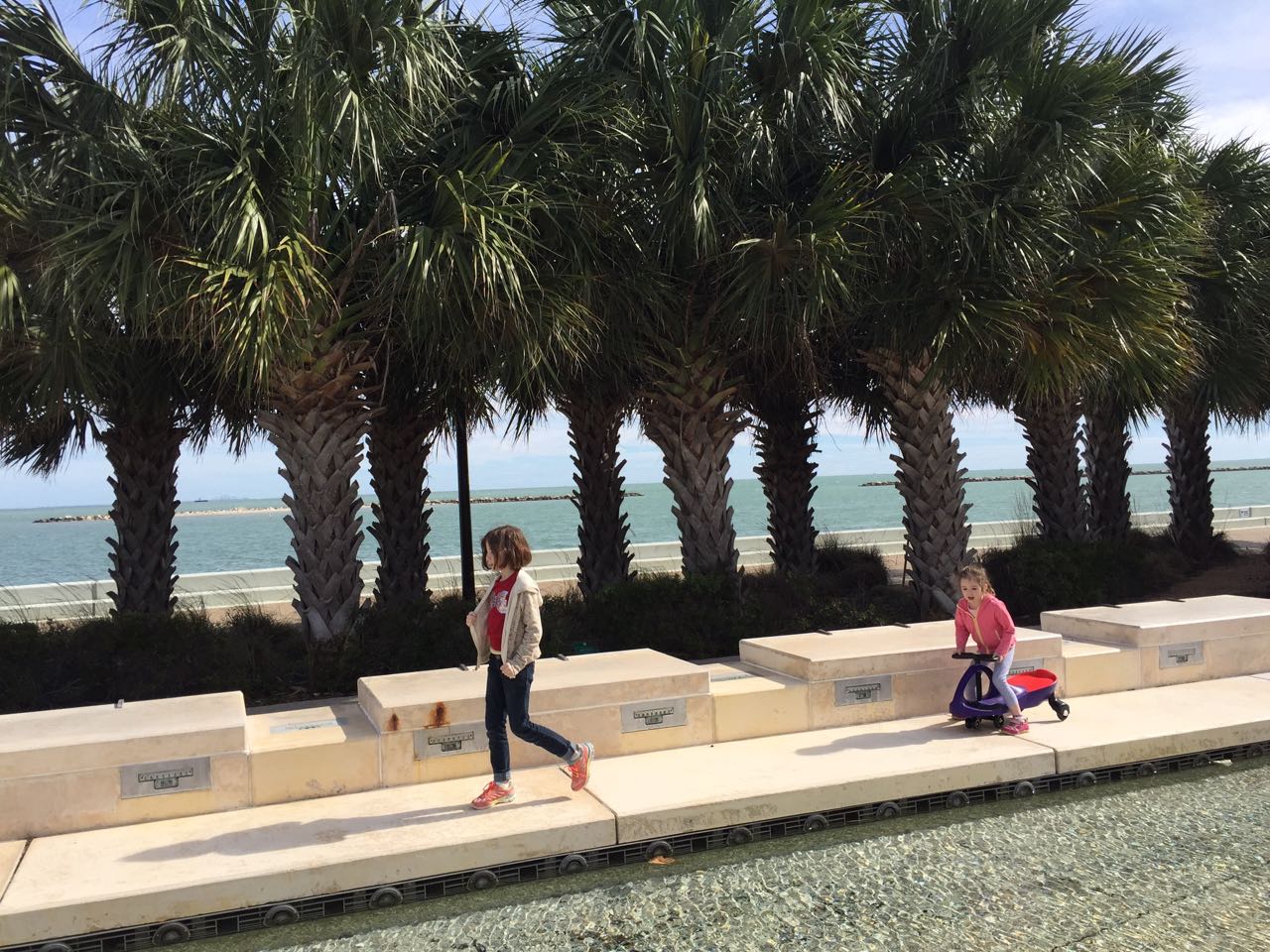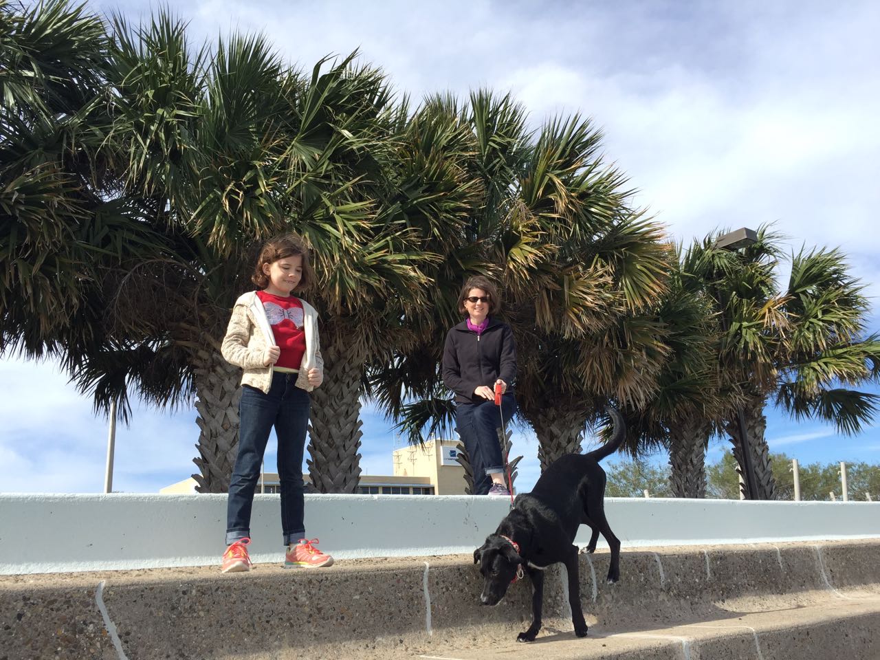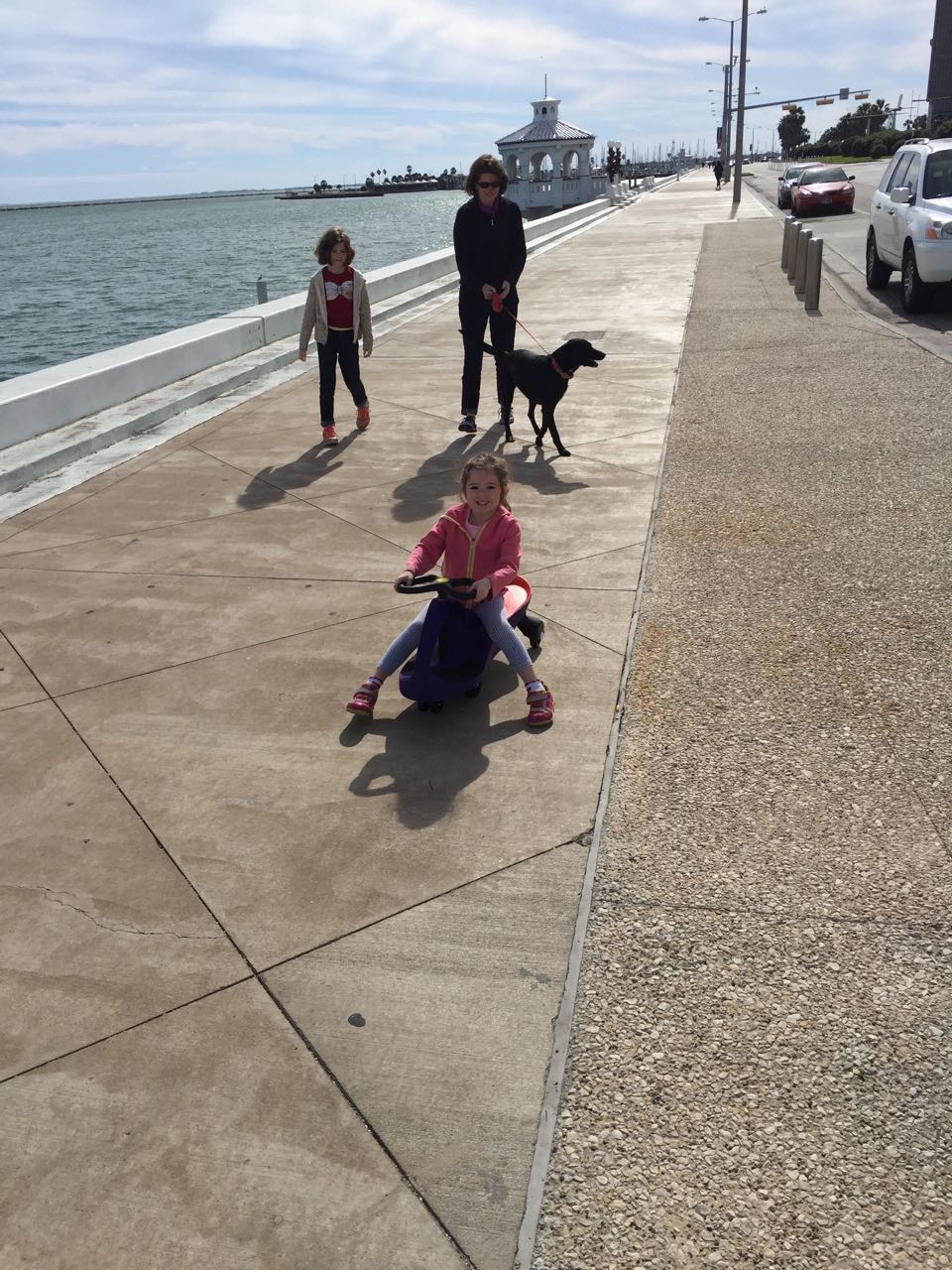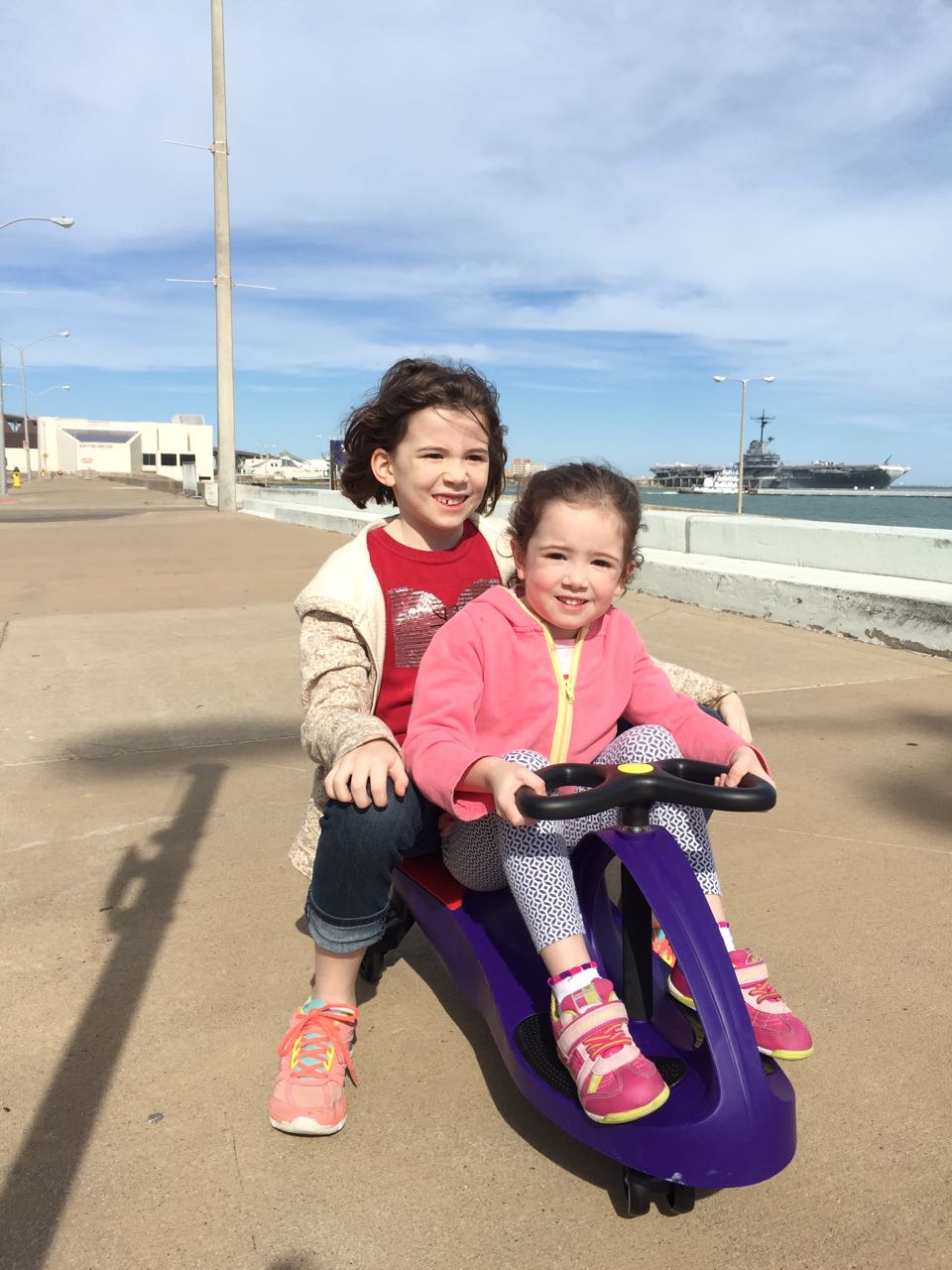In Corpus, we had Kit’s parents, Kit’s uncle Bob, and my parents. We had a great, slow Christmas day with the whole family. We stuffed ourselves on ham, green beans, salad, and pecan pie. We watched Home Alone and sat around chatting while the kids played. It was a good day. People were curious and excited about my new job at Whole Foods. We also headed down to Corpus Christi waterfront for a sunny afternoon walk and to let Molly try her Plasma Car on a big, wide sidewalk.