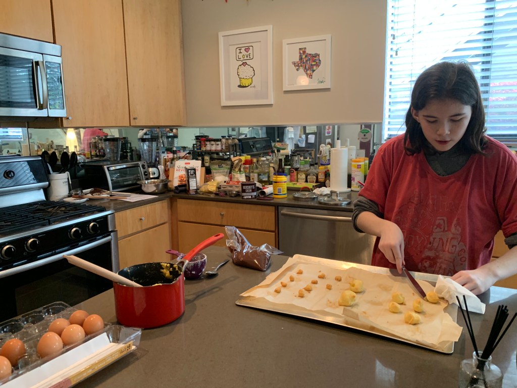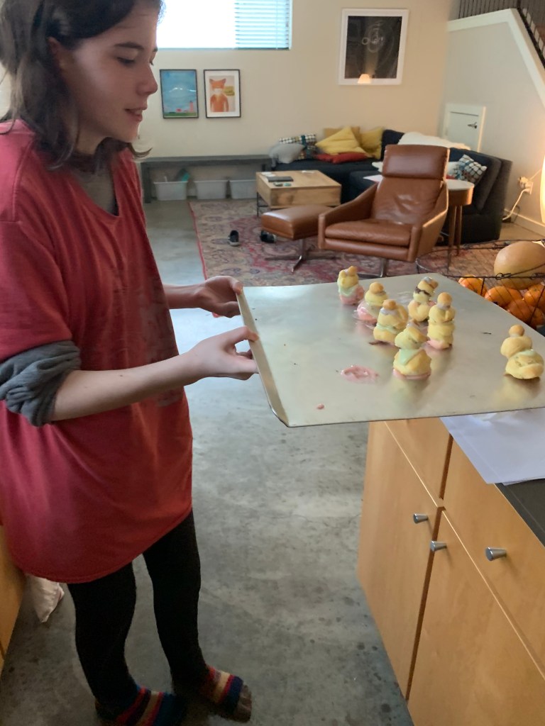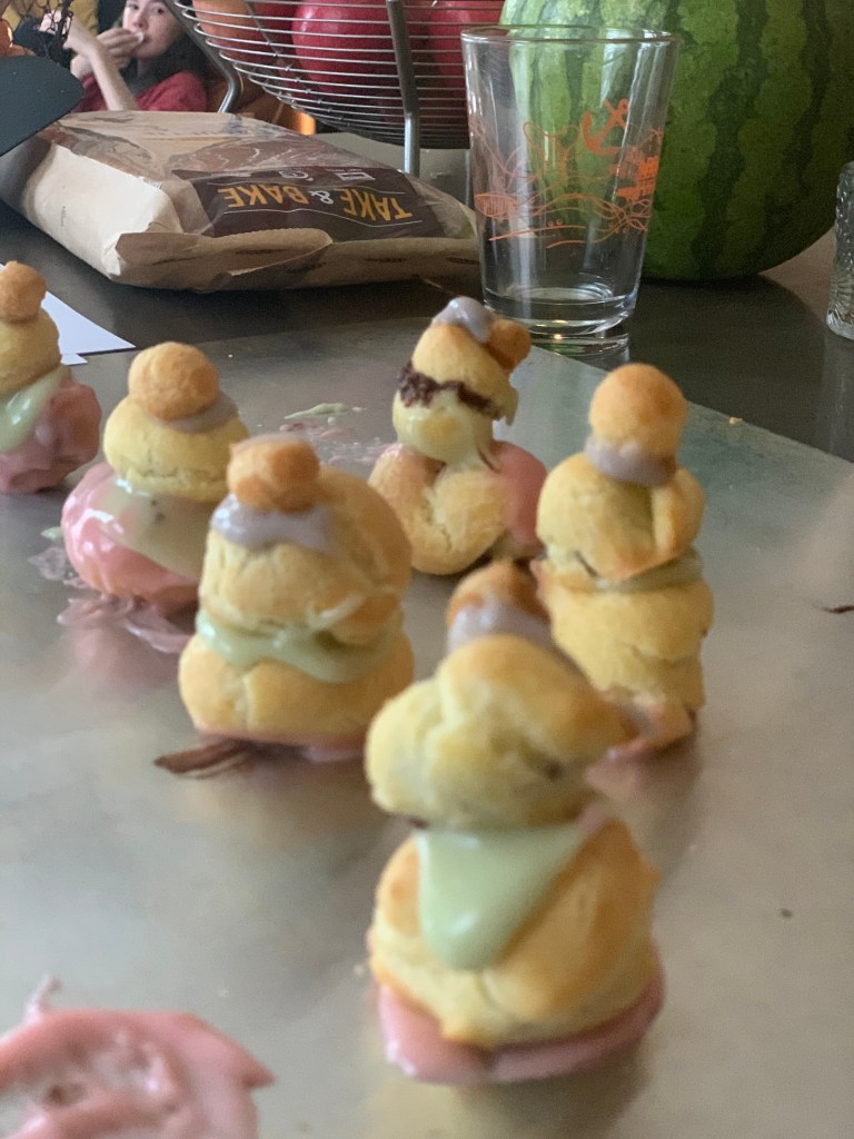 Claire did almost the entire recipe herself. The kitchen was a mess, but the result was amazing. It’s a light, creamy, slightly sweet pastry. It tastes even better than we expected. We did not include pick axes to get anyone out of jail, but maybe we will next time. 🤷🏻♂️