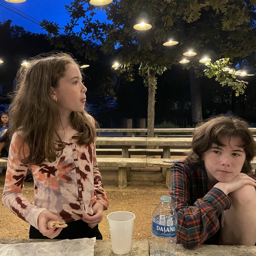 Here’s a picture of Claire and Molly at an evening picnic we had the other day.
