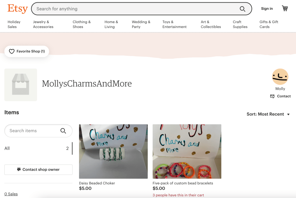 Molly has gotten so good at making her own bracelets that she decided to open her own Etsy shop: Mollys Charms And More. 🤩