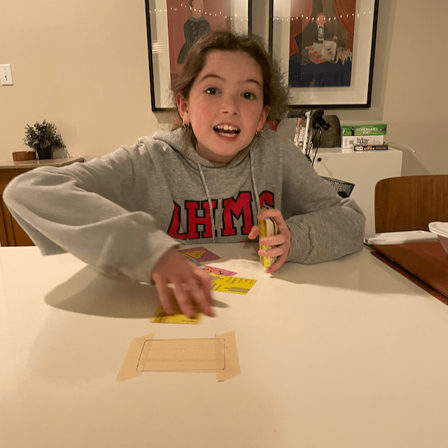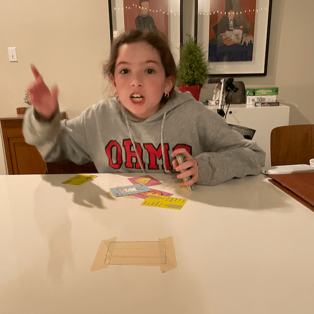 Molly is super into the card game Taco Cat Goat Cheese Pizza! Here she is in action.