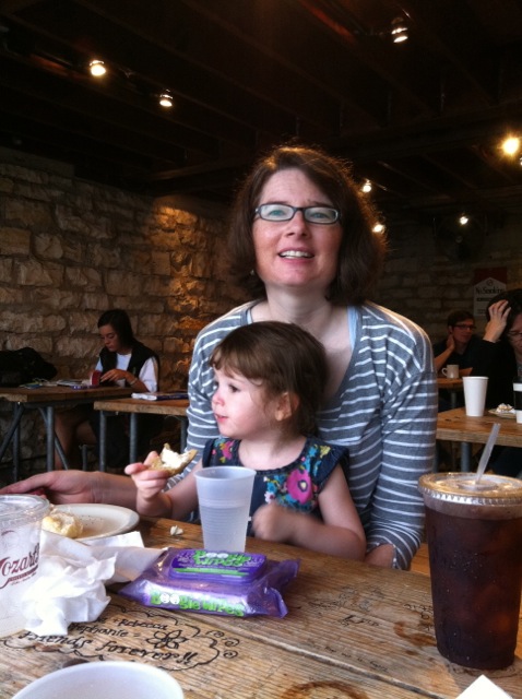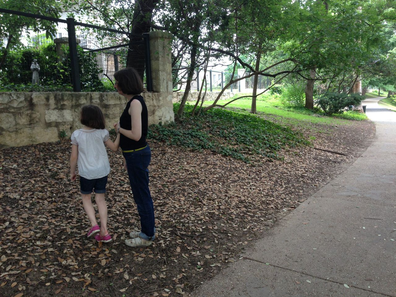 Then it was off to the southern reach of the Riverwalk. This is the more park-ish part than runs through the old King William residential neighborhood. We explored King William and the river. People were kayaking on the river, and there were lots of joggers. This was the part especially meant for Kit. She has always said she liked this part of town and the river. Claire, who loved the more dense central part of the river, was somewhat skeptical even before we headed down to King William. “I know what’s going to happen. We’re going to walk around a look at a lot of boring old houses and not do anything fun.” She and Molly got a little sluggish on this stretch, but they seemed to have fun too. We then had an awesome brunch at Liberty Bar, I think the best meal I had in many months.