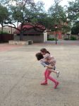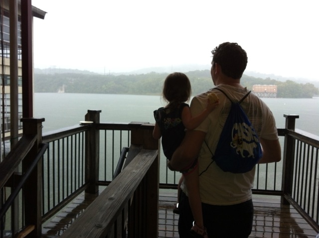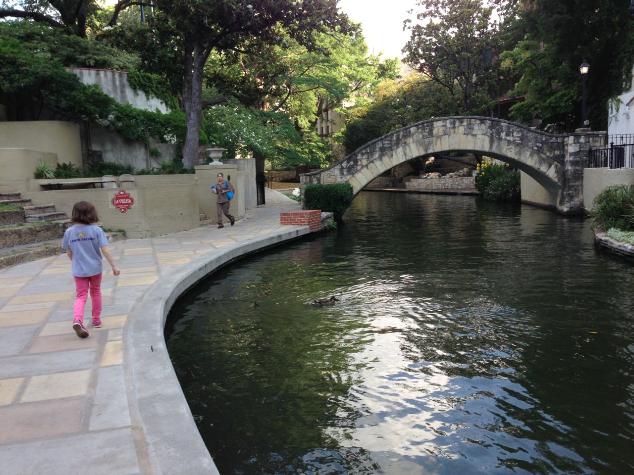 Molly’s says her favorite part of the trip was the water walls leading past the Hyatt Regency to the Riverwalk (in Molly’s words, “the big water things”). She wanted to just look at the flowing water and kept asking to go back. The water walls were big enough and on all sides, giving the feeling of being sort of in the water yourself. The water was loud but had a nice calming effect. Then a series of small bridges and rivers inside the hotel lead to the Riverwalk. I have enjoyed this amazing hotel lobby since I was young, and it was nice to see Molly appreciate it too.