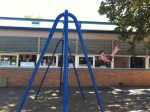 Claire swings herself almost into the trees