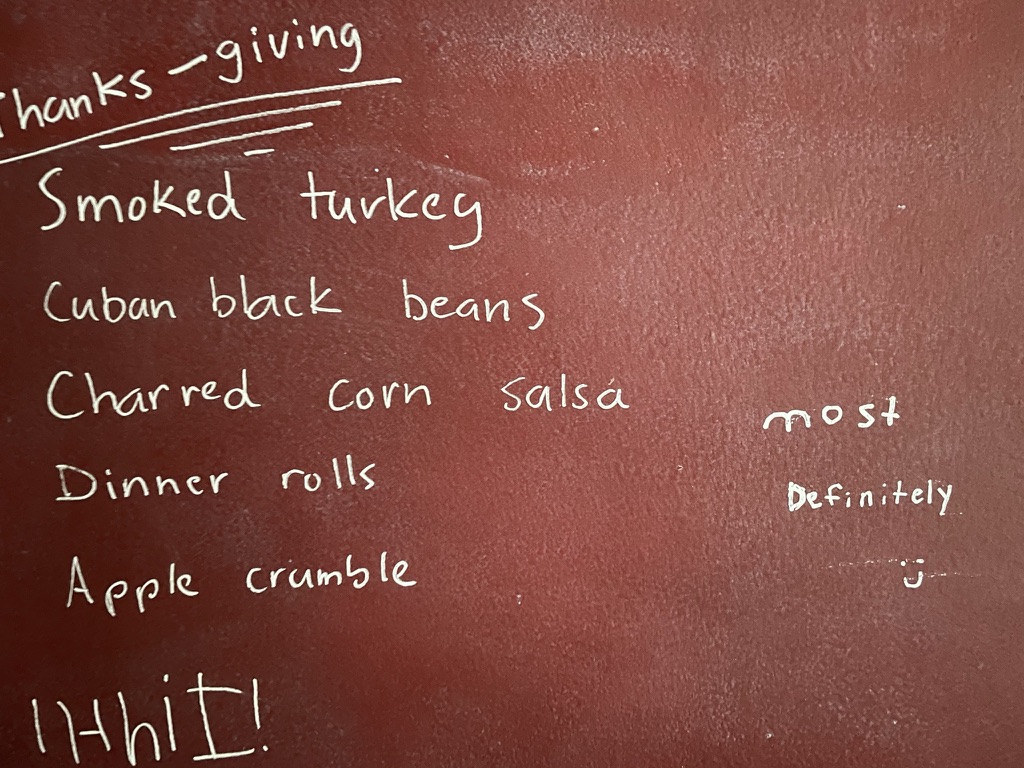 We made our favorite “Very-aki” chicken from memory. We made what Claire described as a “modern Mexican Thanksgiving meal”. Between the apple crumble dessert and making Claire’s apple birthday cake, we peeled, cored, and shredded 6 pounds of apples. đŽ