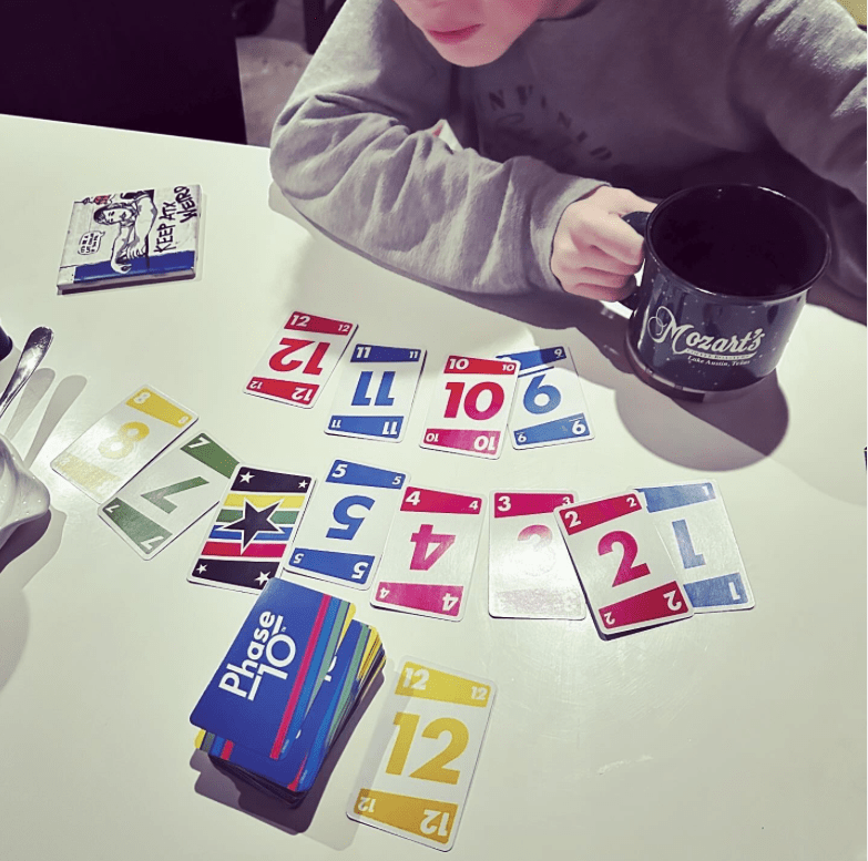 Sheâs killing me at Phase 10; down by 95 points with this hand. đ #cardgame #phase10 #familytime #family #kids #auatin #texas #atx #shotoniphone #mcgkids