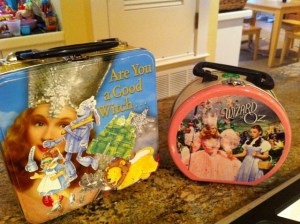 Due to their changing lunch situations (Claire buying lunch at school for $2.15 — yes! — and Molly outgrowing her tiny old lunch box), we are also retiring the trusty old Wizard of Oz lunch boxes that have clanged their way through the halls of daycare the last year or so. Here is a picture in memorial.