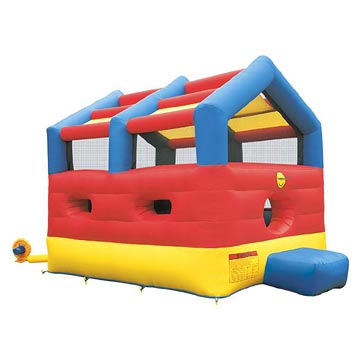 We did a couple of arts and crafts first, to sort of warm up to the fair. But there was no line for the bounce house, so we headed that way soon. In fact, nobody was even watching the bounce house. Claire crawled in with two or three other little kids about her age and started doing her thing. Several minutes later, a pair of older boys crawled in. They were maybe 8 or 10 years old. Their size made me a little uneasy, but everything seemed fine as the older boys gave the littler kids some extra space. Even if I really wanted to, I had no good way of getting Claire out of there. The entryway was too small for me to climb in and grab Claire. Plus I had Muffin to keep track of. And have you ever tried talking a kid out of a bounce house? That must be like trying to talk a fish out of the water.