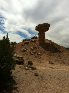 Once in New Mexico, we drove the Turquoise Trail to Santa Fe. Claire had been interested in seeing the desert, but had also been worried about being poked by a cactus.  Fortunately, we steered clear of cactuses (alright, “cacti”). Claire had expected New Mexico to look like the desert planet Tatooine from Star Wars. It was not quite as sandy as that, but in Madrid, NM, we did come across something that looked kind of like the feared Sand People of Tatooine.